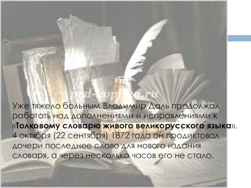 Уже тяжело больным Владимир Даль продолжал работать над дополнениями и