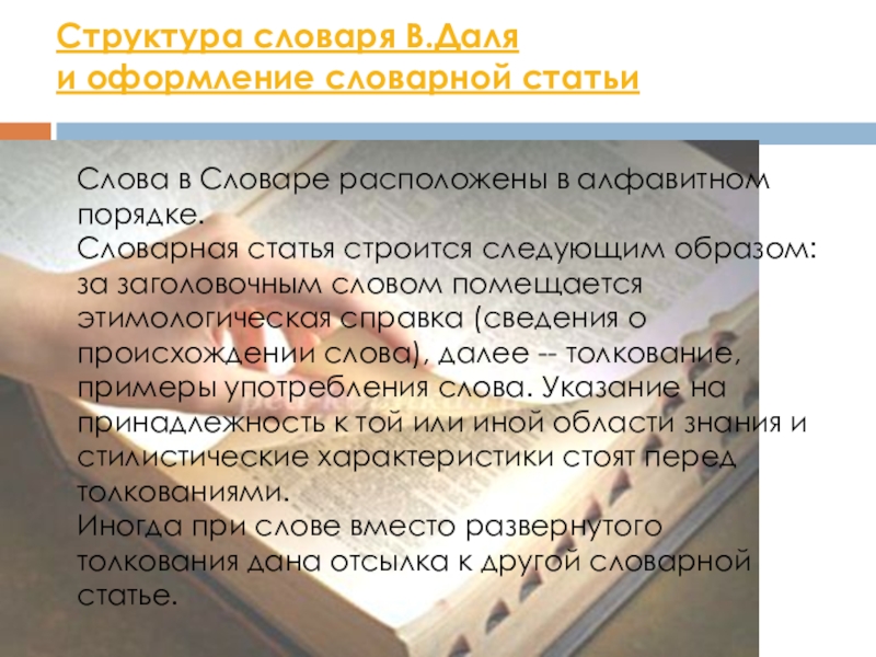 Слайд 16Структура словаря В.Даля