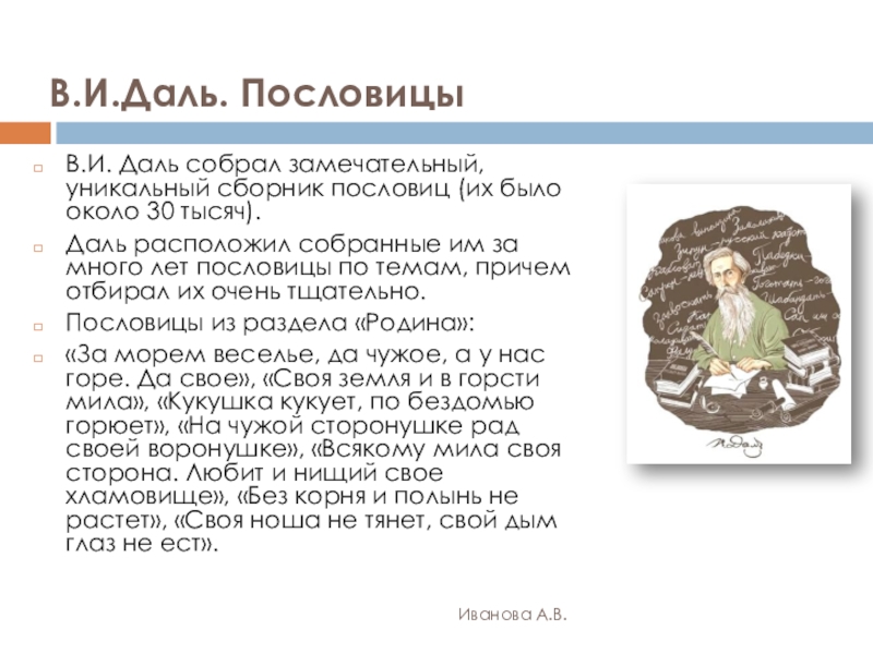 В.И. Даль собрал замечательный, уникальный сборник пословиц (их было