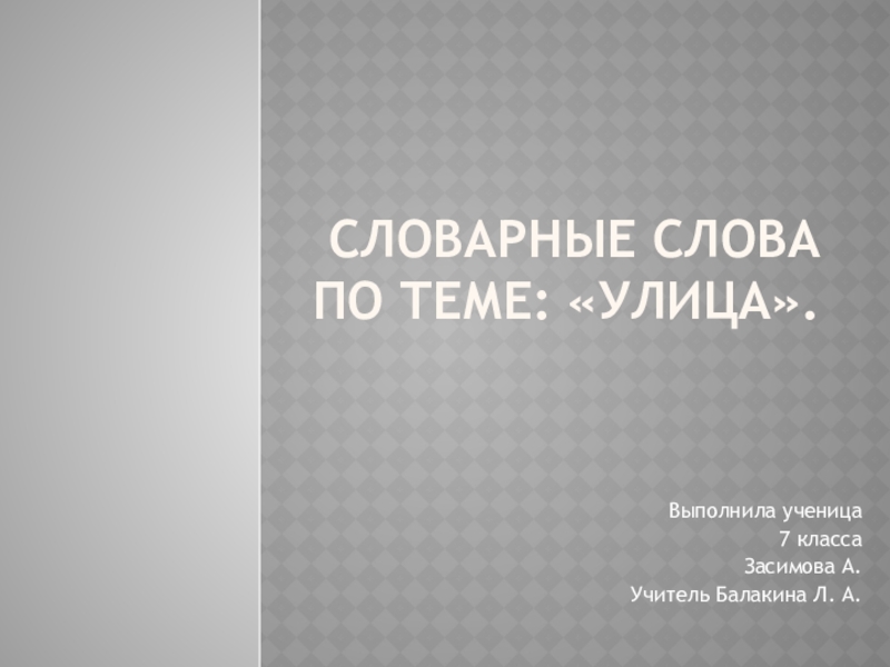 Словарные слова  по теме: «улица».Выполнила ученица7 классаЗасимова А.Учитель Балакина Л. А.