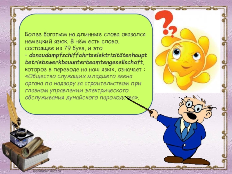 Слайд 6Более богатым на длинные слова оказался немецкий язык. В нём есть