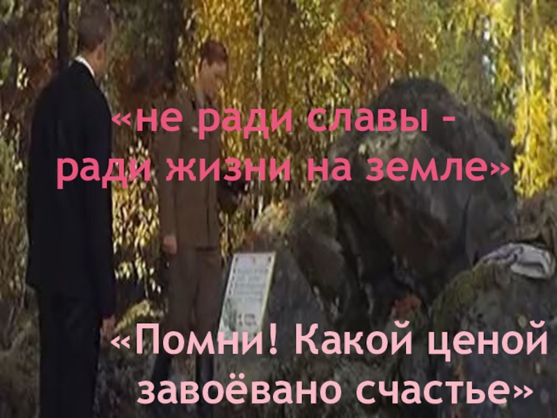 «не ради славы –ради жизни на земле»«Помни! Какой ценой завоёвано счастье»
