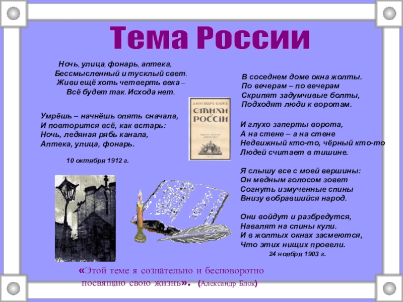 посвящаю свою жизнь». (Александр Блок)