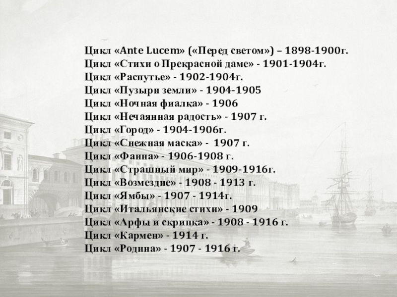 Слайд 5Цикл «Ante Lucem» («Перед светом») – 1898-1900г.