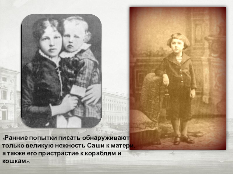 Слайд 8«Ранние попытки писать обнаруживают только великую нежность Саши к матери, а
