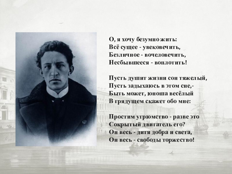 Слайд 20О, я хочу безумно жить: