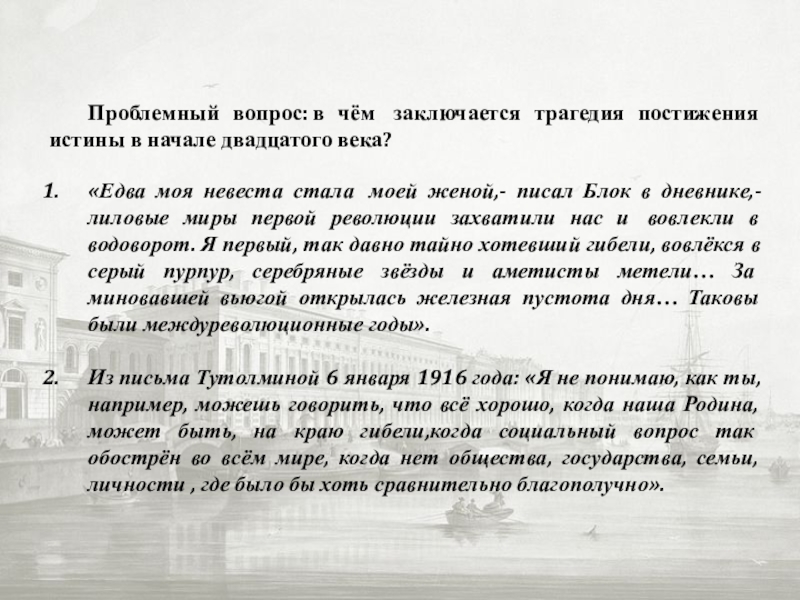 Слайд 19Проблемный вопрос: в чём заключается трагедия постижения истины в начале двадцатого века?