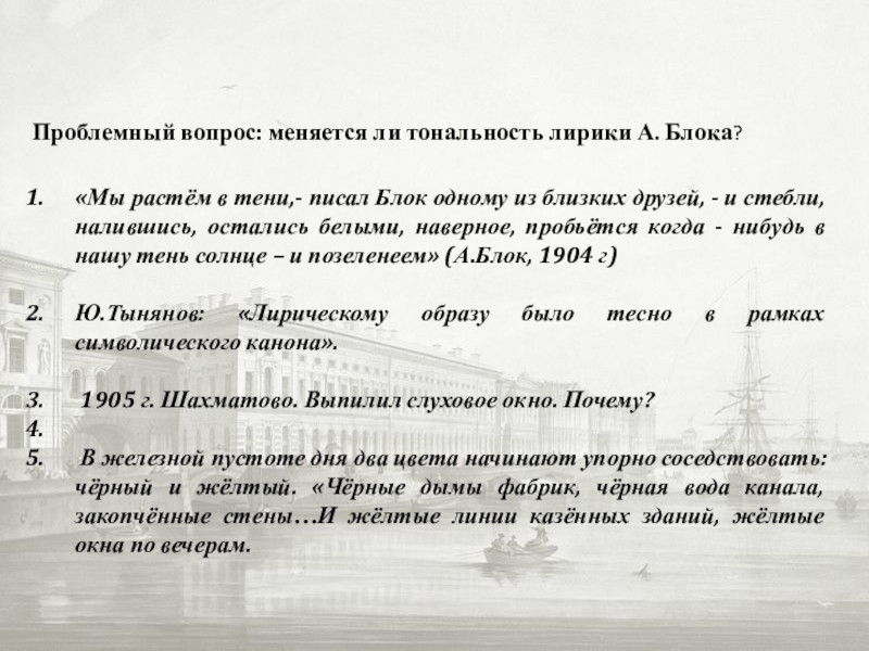 Проблемный вопрос: меняется ли тональность лирики А. Блока?