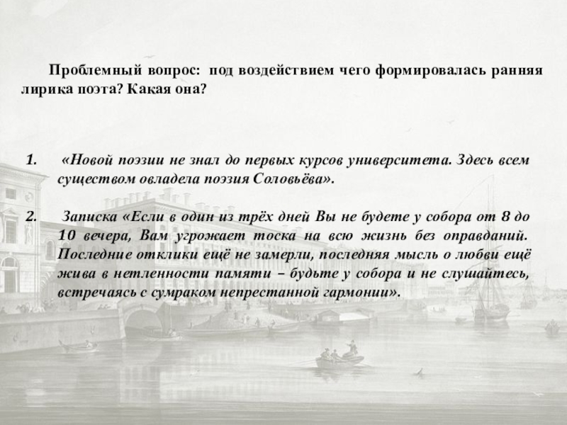 существом овладела поэзия Соловьёва».