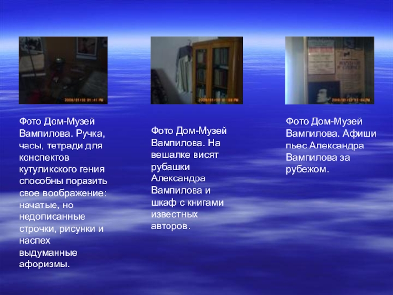 Слайд 9Фото Дом-Музей Вампилова. Ручка, часы, тетради для конспектов кутуликского гения способны