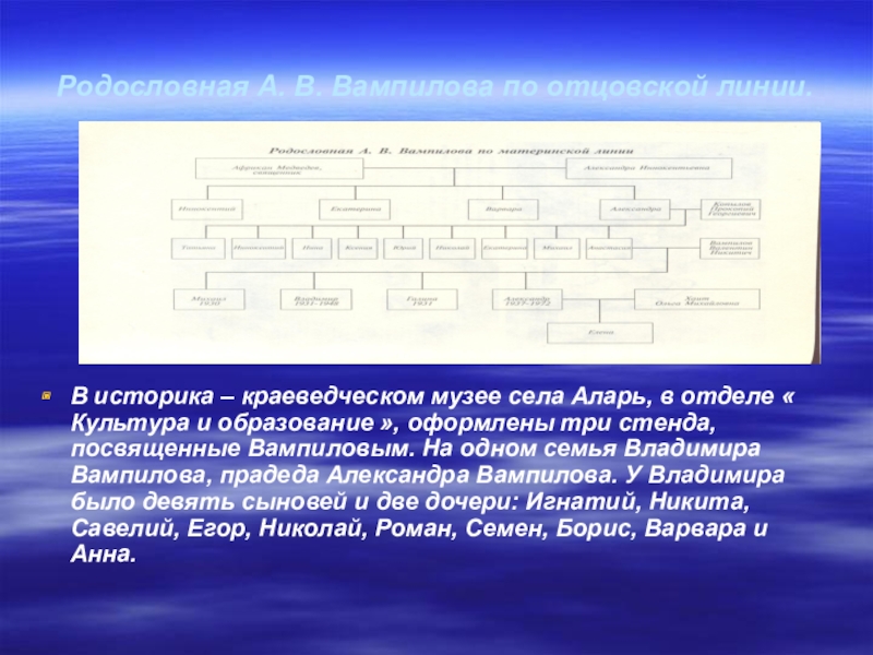 Слайд 5Родословная А. В. Вампилова по отцовской линии.
