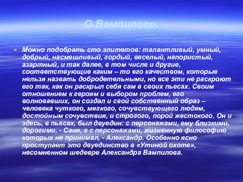 Слайд 7О Вампилове.