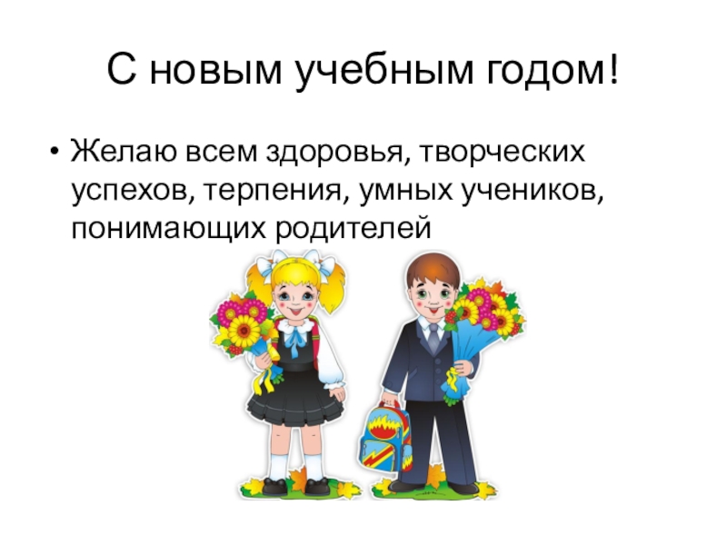 С новым учебным годом!Желаю всем здоровья, творческих успехов, терпения, умных учеников, понимающих родителей