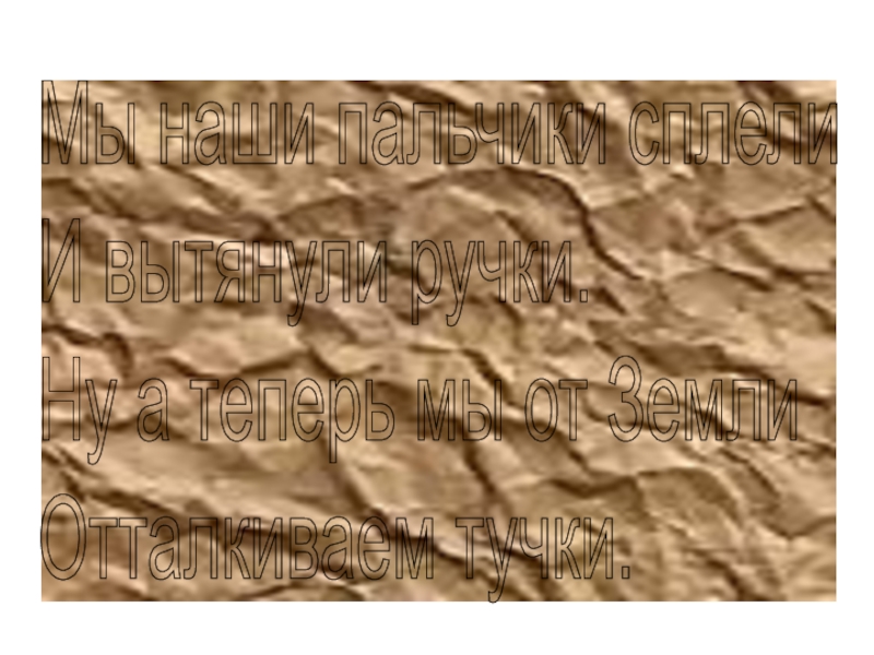 Мы наши пальчики сплели И вытянули ручки. Ну а теперь мы от Земли Отталкиваем тучки.