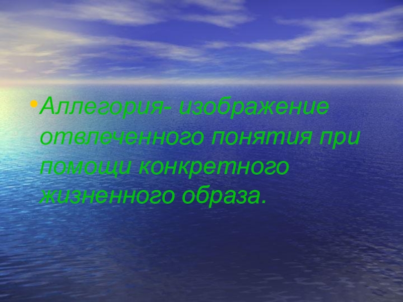 Аллегория- изображение отвлеченного понятия при помощи конкретного жизненного образа.