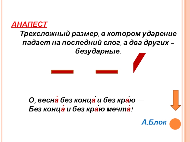 Слайд 35Трехсложный размер, в котором ударение падает на последний слог, а два