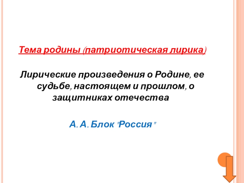 Лирические произведения о Родине, ее судьбе, настоящем и