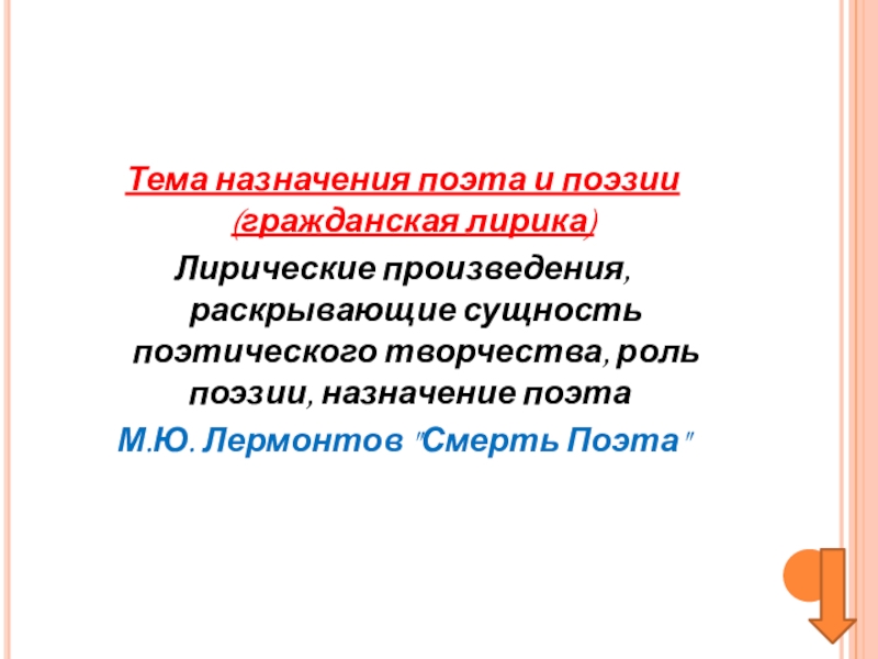 Слайд 7Тема назначения поэта и поэзии (гражданская лирика)