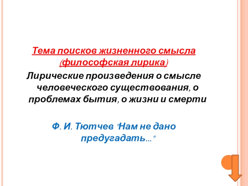 Слайд 8Тема поисков жизненного смысла (философская лирика)