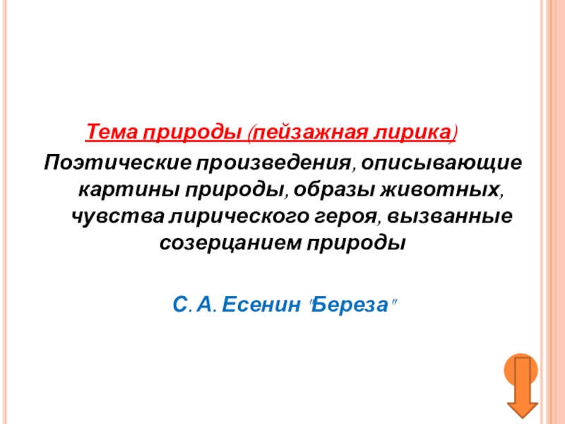 Поэтические произведения, описывающие картины природы, образы животных, чувства