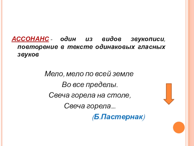 Слайд 29АССОНАНС - один из видов звукописи, повторение в тексте одинаковых гласных