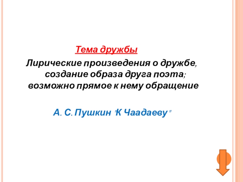 Лирические произведения о дружбе, создание образа друга поэта; возможно прямое