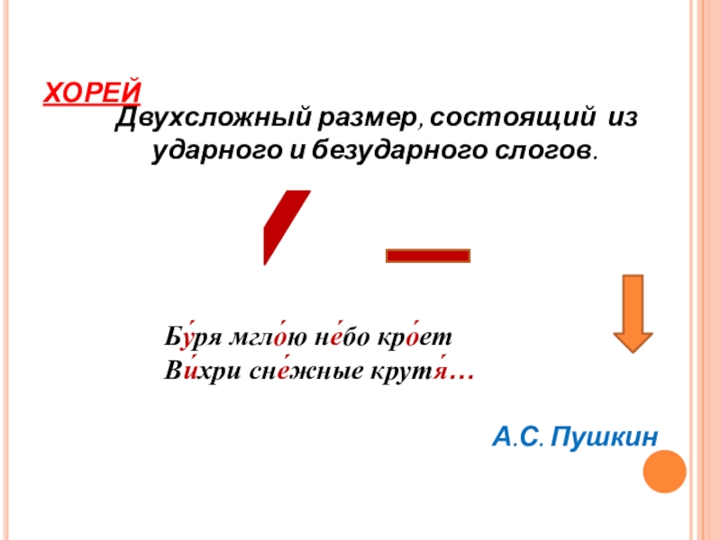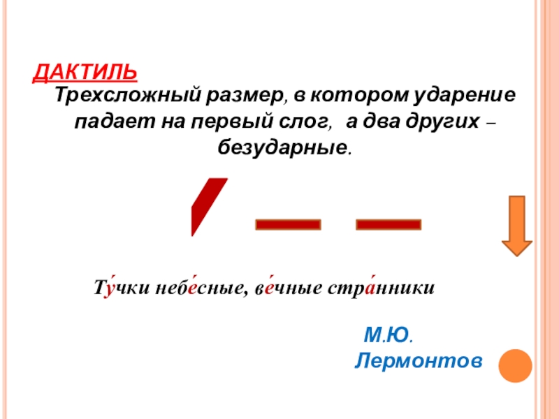 Слайд 33Трехсложный размер, в котором ударение падает на первый слог, а