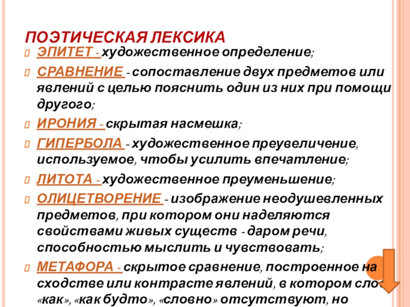 Слайд 18ПОЭТИЧЕСКАЯ ЛЕКСИКА
