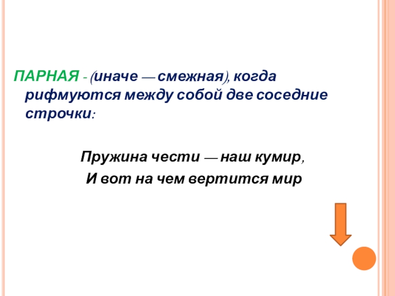 ПАРНАЯ - (иначе — смежная), когда рифмуются между собой две соседние