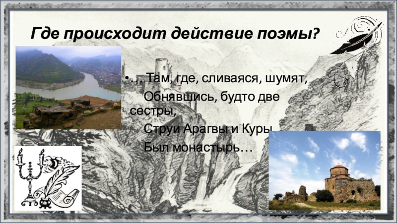Слайд 3 Действие поэмы происходит в Грузии. Возникновение замысла связано с