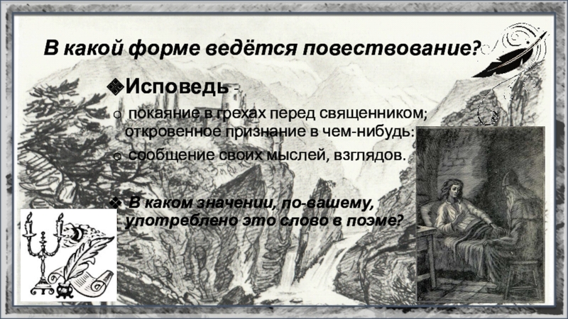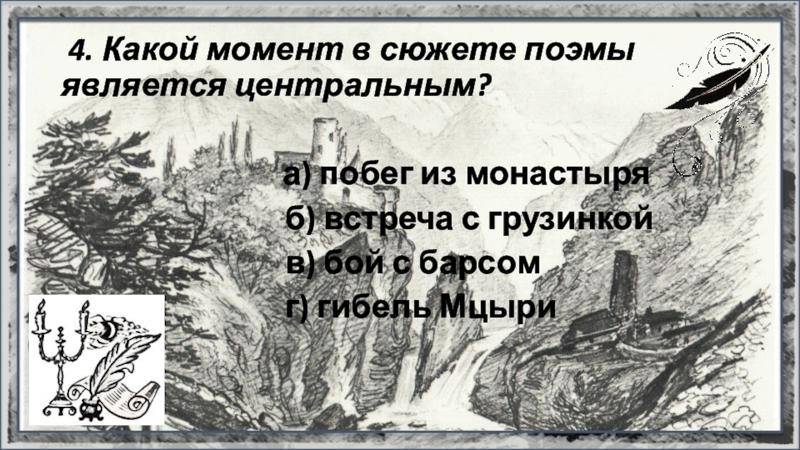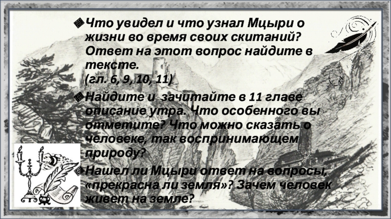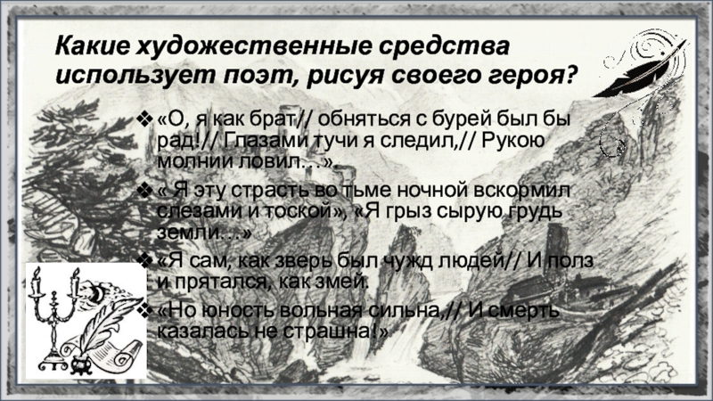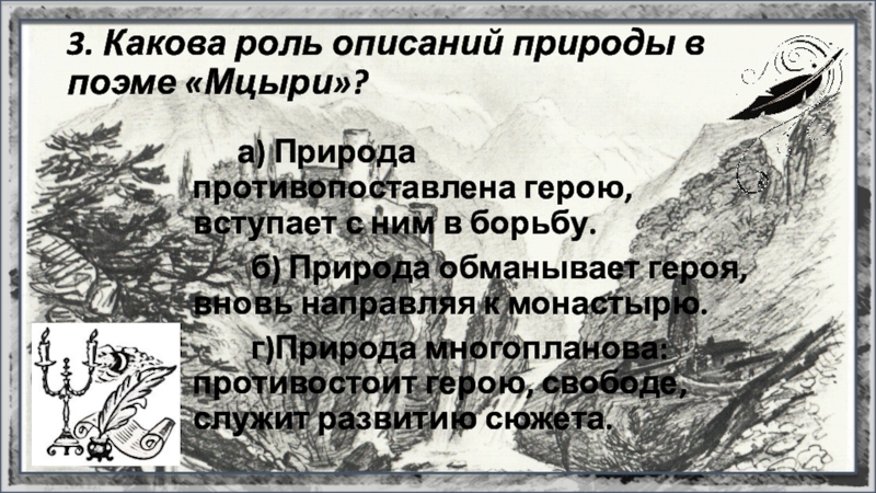 Слайд 163. Какова роль описаний природы в поэме «Мцыри»?