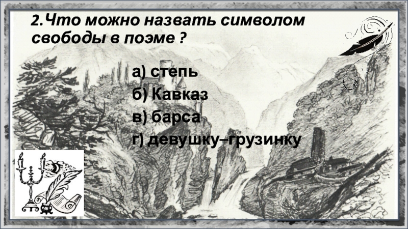 Слайд 152.Что можно назвать символом свободы в поэме ?