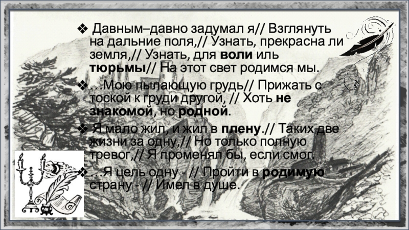 Слайд 8 Давным–давно задумал я// Взглянуть на дальние поля,// Узнать, прекрасна ли