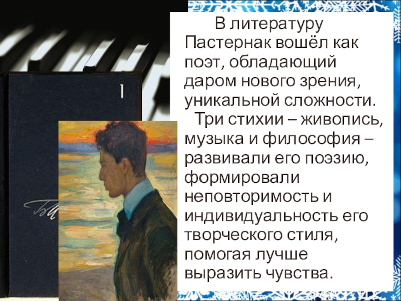 Слайд 3 В литературу Пастернак вошёл как поэт, обладающий даром нового зрения, уникальной