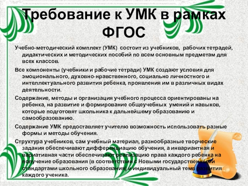 Слайд 3При выборе УМК, соответствующего новому стандарту, следует учитывать