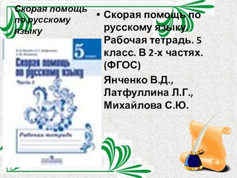- «Скорая помощь по русскому языку». Рабочая тетрадь;