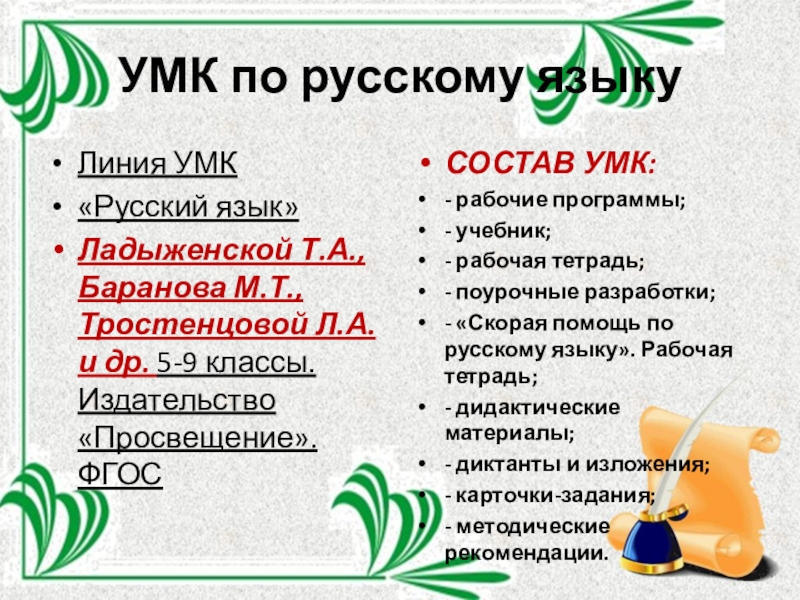 Слайд 1Анализ УМК по русскому языку Т.А.Ладыженской в соответствии с ФГОС