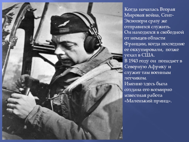 Слайд 3Когда началась Вторая Мировая война, Сент-Экзюпери сразу же отправился служить.