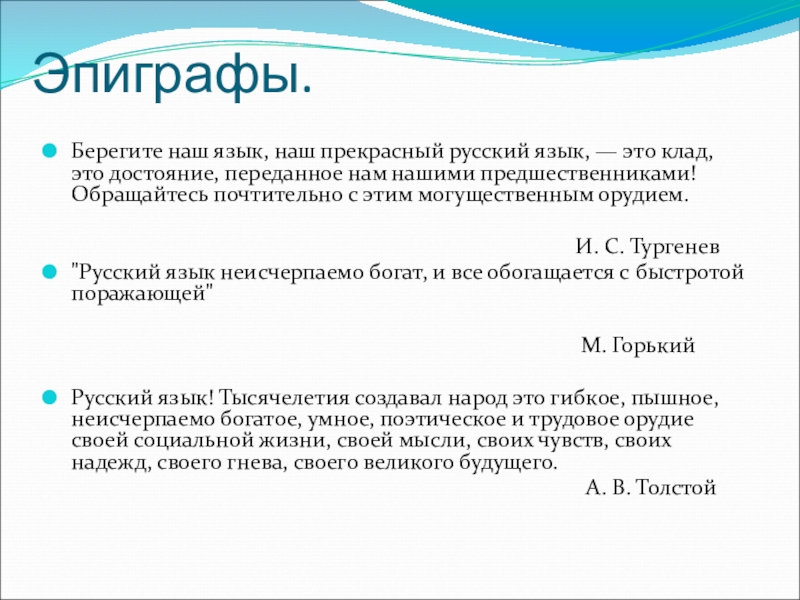 Берегите наш язык, наш прекрасный русский язык, — это клад, это