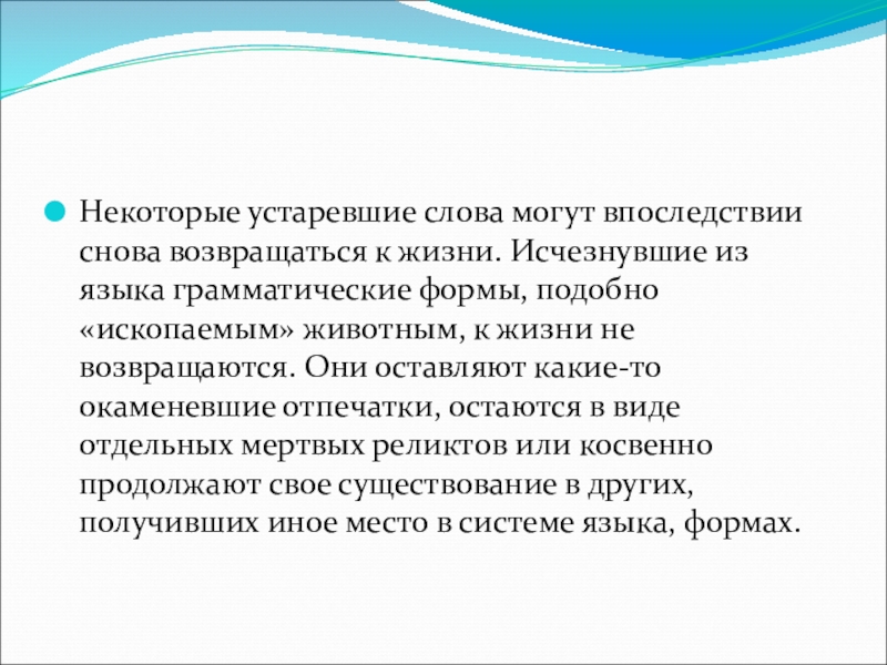 Некоторые устаревшие слова могут впоследствии снова возвращаться к жизни. Исчезнувшие из