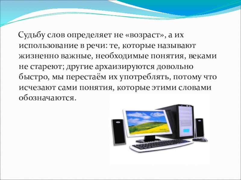 Слайд 7 Судьбу слов определяет не «возраст», а их использование в