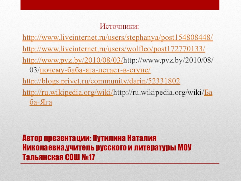 Слайд 27Автор презентации: Путилина Наталия Николаевна,учитель русского и литературы МОУ Тальянская СОШ