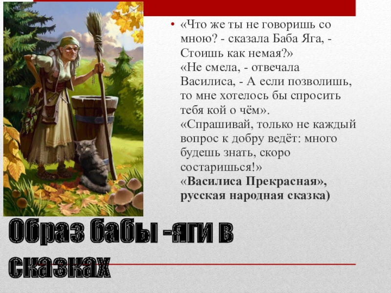 «Что же ты не говоришь со мною? - сказала Баба Яга,