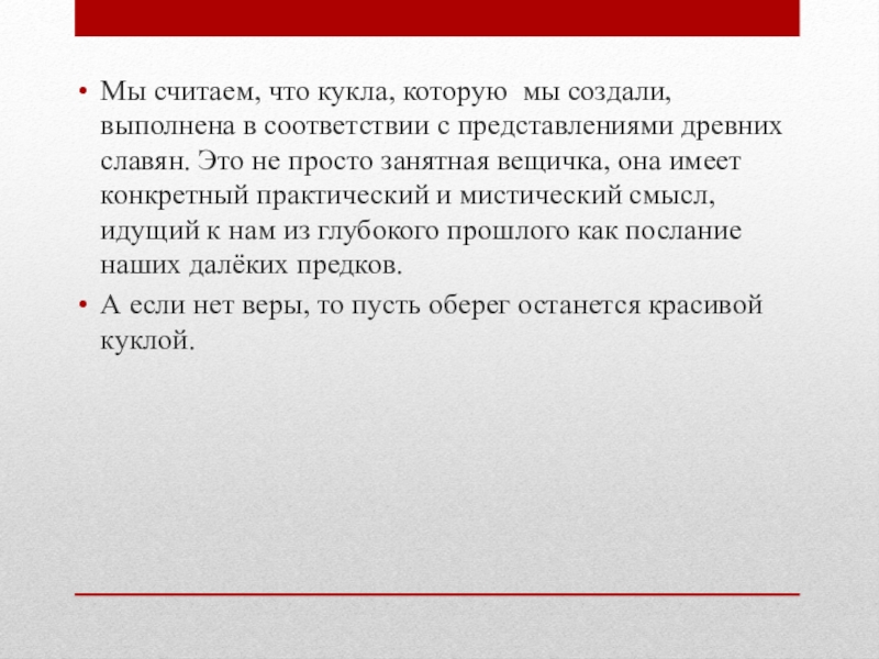 Мы считаем, что кукла, которую мы создали, выполнена в соответствии с