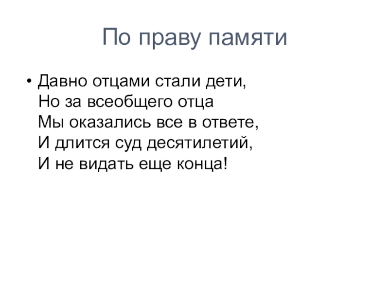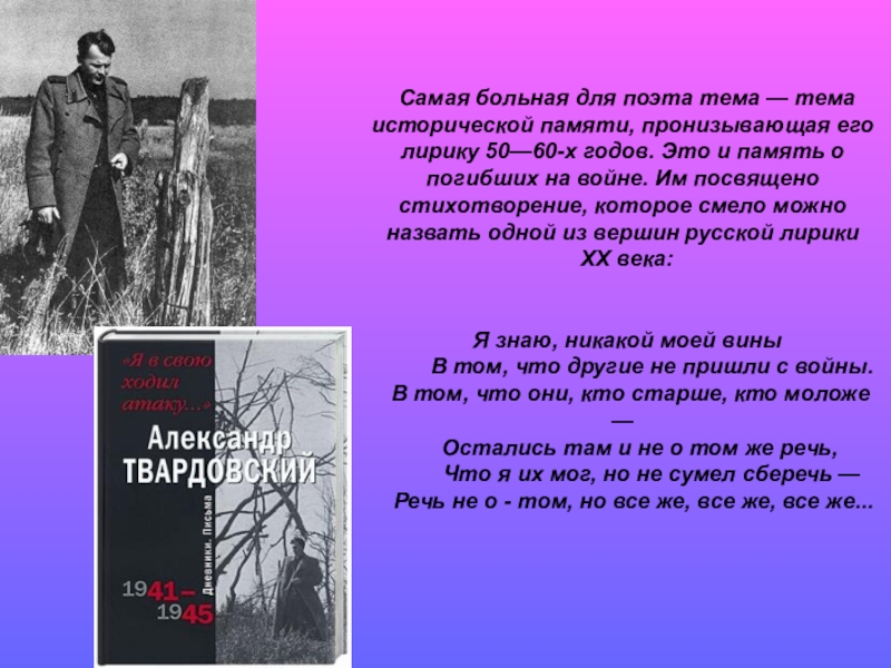 Слайд 26Самая больная для поэта тема — тема исторической памяти, пронизывающая его