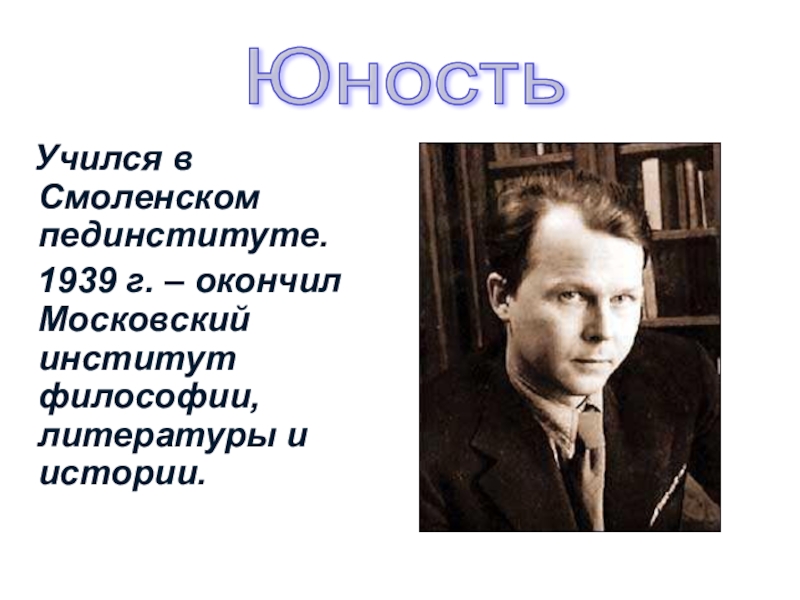 Слайд 27Важными вехами в жизни Александра Трифоновича Твардовского была работа в качестве