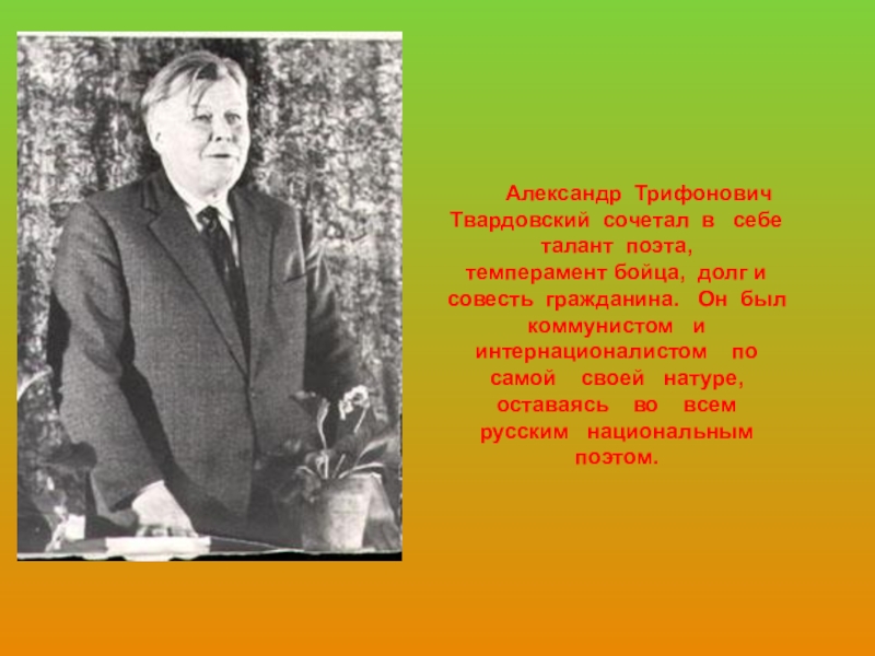 Слайд 32 Александр Трифонович Твардовский сочетал в себе