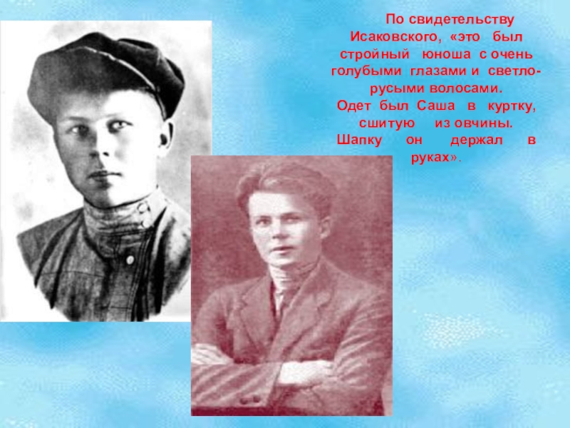 Слайд 9 По свидетельству Исаковского, «это был стройный юноша с очень