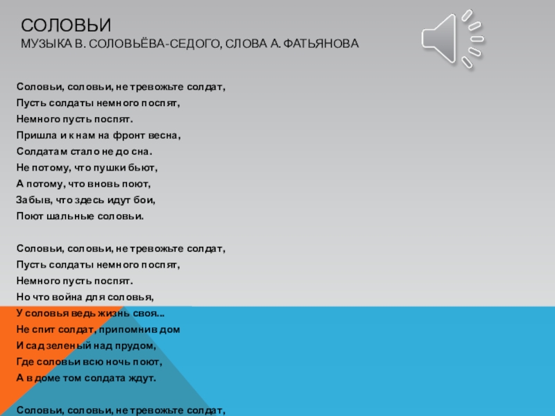 Музыка В. Соловьёва-Седого, слова А. Фатьянова