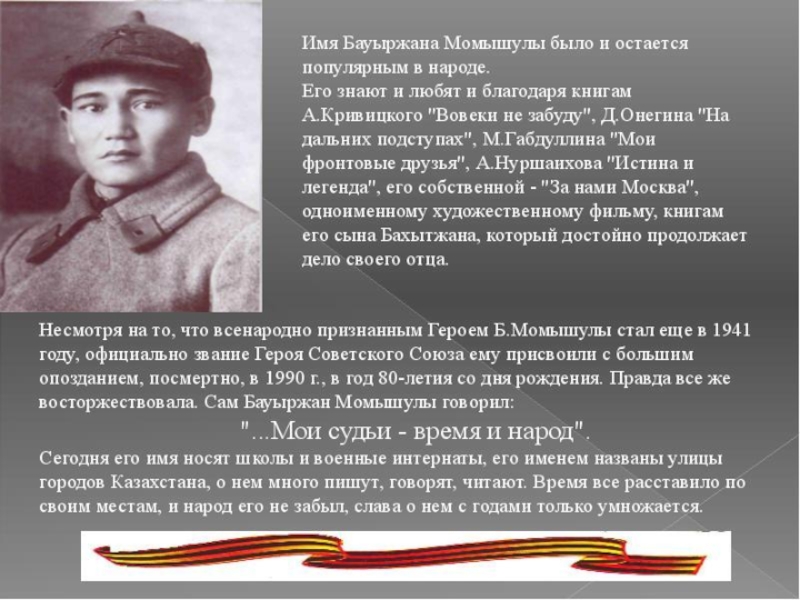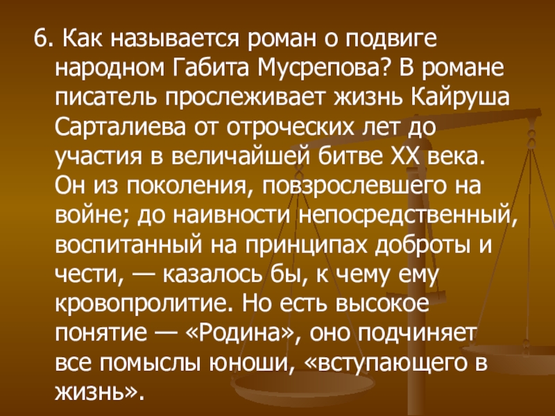 Слайд 166. Как называется роман о подвиге народном Габита Мусрепова? В романе